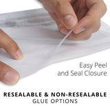 STRONG SELF-ADHESIVE SEAL: Choose between resealable or permanent (extra strong) glue. The resealable poly bags allow for reopening and reusing, while the permanent seal is the ultimate in protection and can't be opened without ripping or cutting the bag.